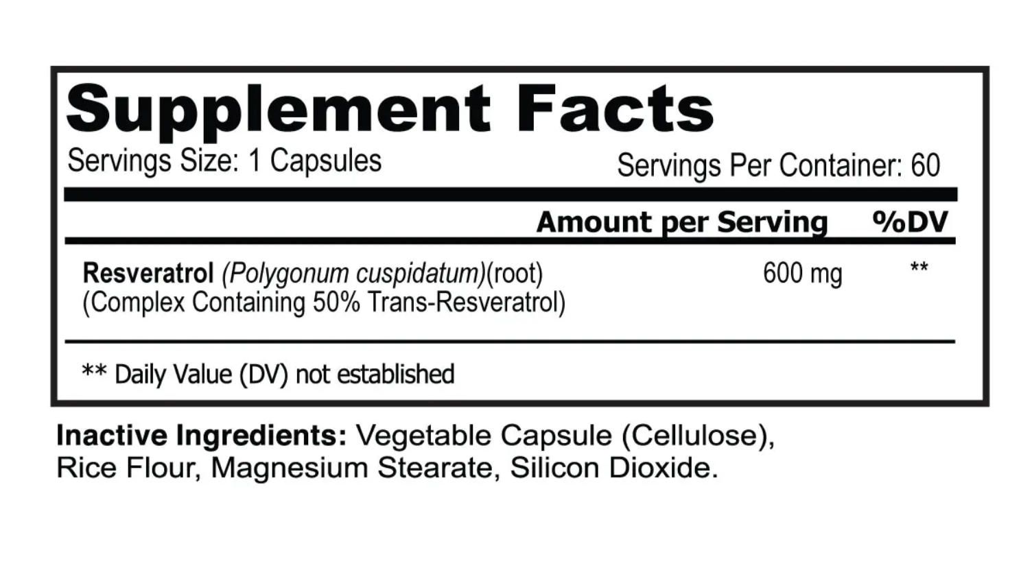 Bioavailability Note: Resveratrol has relatively low oral bioavailability. Taking with healthy fats significantly improves absorption. Consider micronized or liposomal formulations for enhanced bioavailability if needed.